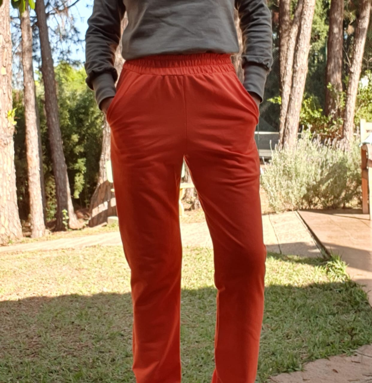 Calça em moletom de 95% de algodão BCI e 5% de elastano. Feita para o inverno brasileiro. Ótimo caimento. Com recorte reto, essa peça é Comfy e elegante.
