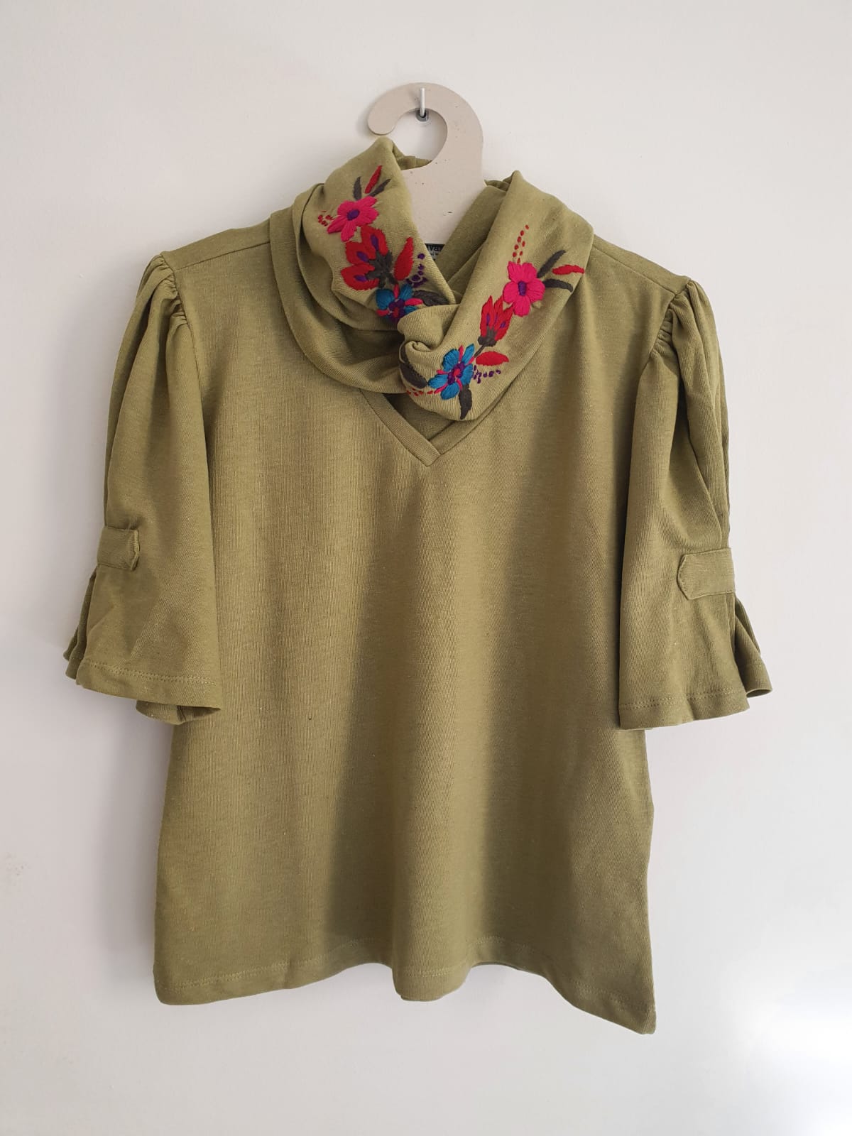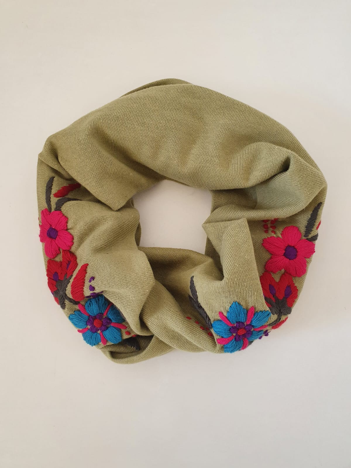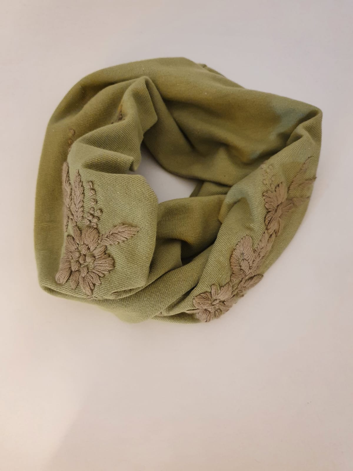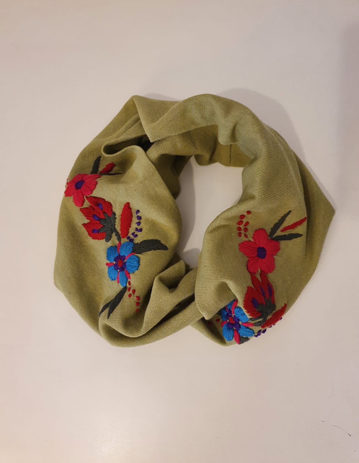 Gola bordada que coloca charme em qualquer look, além de ajudar a se proteger do friozinho! Feita de malha reciclada, reutilizando resíduos de tecidos não utilizados, evitando seu descarte.